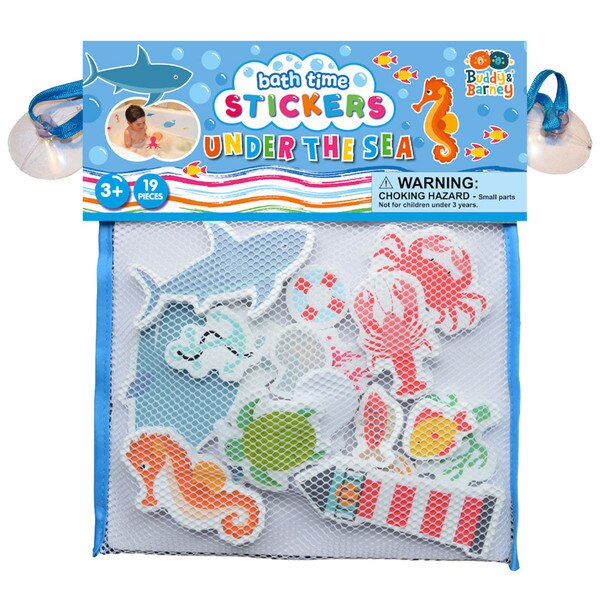 Children will love to pretend they are under the sea with this set of bath, full of images of fish and other sea creatures! The chunky foam pieces can be stuck to the bath tub when they’re wet, or float on the surface of the water. Comes in a handy mesh bag with suction pads.