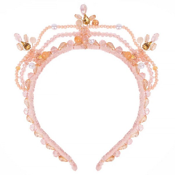 Fit for a fairy tale, the Blushing Crystals Beaded Tiara brings soft sparkle and royal charm to any look. This enchanting tiara features a band lined with delicate blush-shaded crystals, topped with graceful arched pink beads that add height and elegance. Scattered throughout the design are shimmering gold and pink gemstones paired with dainty pearl accents, giving this tiara a magical glow from every angle.