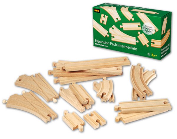 Make any railway set a deluxe experience! Or select some extra pieces to extend your current track. Compatible with all Brio Railway Systems. Includes 16 track pieces and switches and 5 layout suggestions.