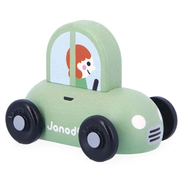 "Off to the supermarket!" In its pretty green color, it's a compact sedan, ideal for getting around town without a hitch! Its shape has been specially designed for little hands, who can easily hold it by the top to drive it around. The vehicles are perfect for inventing stories and developing imagination! Babies first have fun rolling them around, then older children tell all kinds of adventures, developing their vocabulary and creativity.