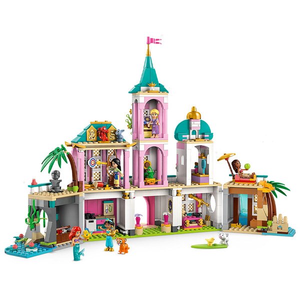 Discover a magical world for kids and Disney fans in this Disney Princess Castle & Royal Pets building playset. This sprawling set features a castle with rooms for each princess, and there are lots of accessories and functions, including a launching bow, waterfall tunnel, removable furniture and more. Plus it includes 5 LEGO Disney minidoll characters: Ariel, Rapunzel, Mulan, Jasmine and Moana,and 5 LEGO Disney animal characters: Flounder, Pascal, Rajah, Pua and the first-ever Mushu character!