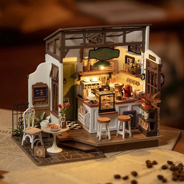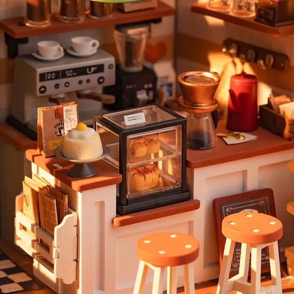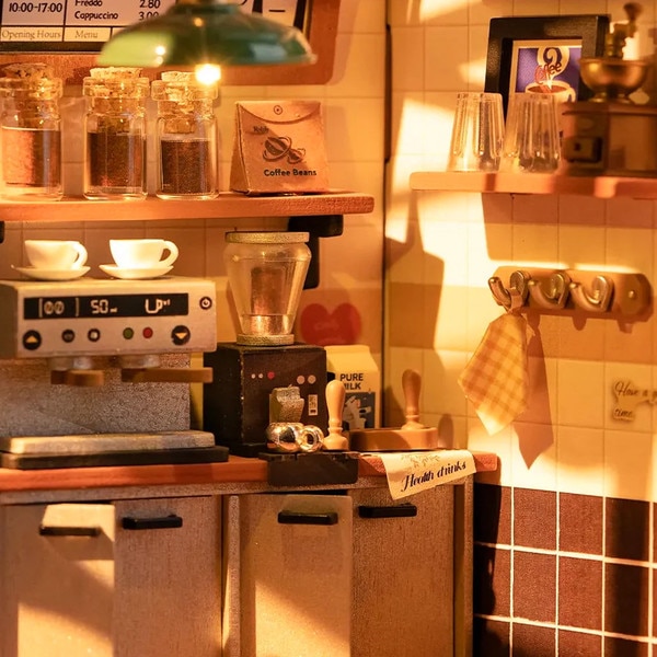 This enchanting Café Miniature House offers a taste of nostalgia as it recreates the ambiance of a premium coffee shop. Owning this piece will surely transport you to a realm of deep relaxation as it makes you relive scenes when you were sipping down your cup of coffee as the day went by. The design draws inspiration from the timeless beauty of a classic coffee shop. Its retro-charm style combines wooden elements, creating calming earth tones that breathe life into its design.