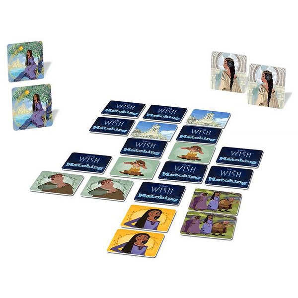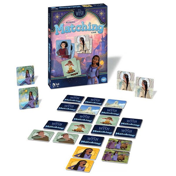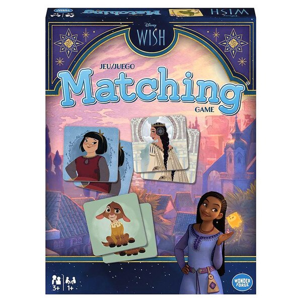 This first memory game is a sweet companion to the newest Disney film! Featuring illustrated characters from Wish, there are 36 matching pairs on thick cards - young children can make matches with the cards facing up; once matching has been mastered the cards can be turned facedown for a more challenging memory game. For 1 or more players. Fans of Memory and Dominoes will enjoy.