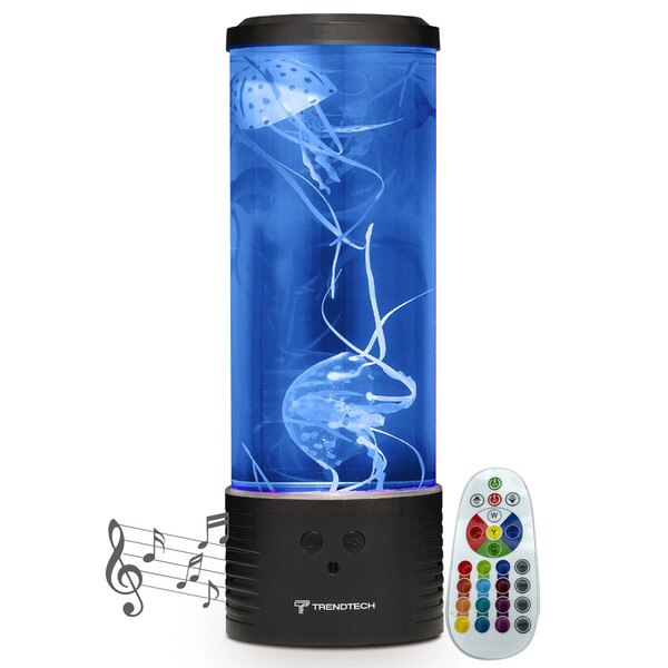 Listen to tunes while watching the smoothly undulating jellyfish! This tranquil jellyfish is lit with 8 multicolor LEDs - both jellyfish motion and lights can be turned on and off, perfect as a bedroom nightlight or living room conversation piece. Built-in Bluetooth speaker has volume control and skip-tracking ability, and comes with USB-C cable.