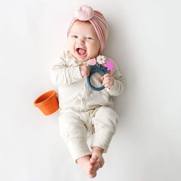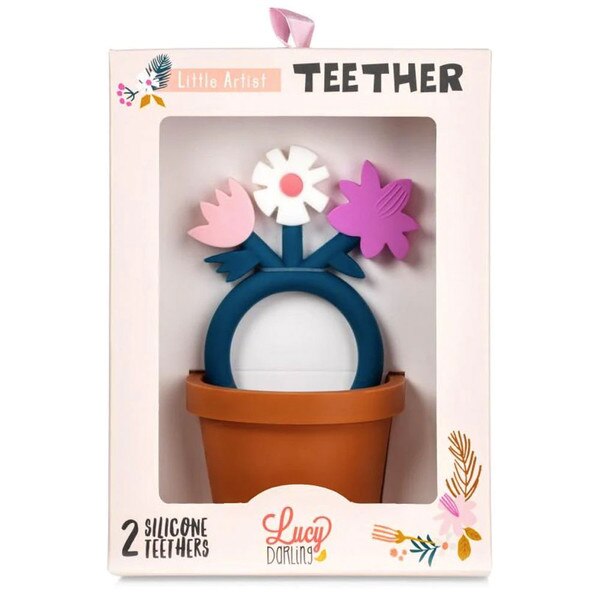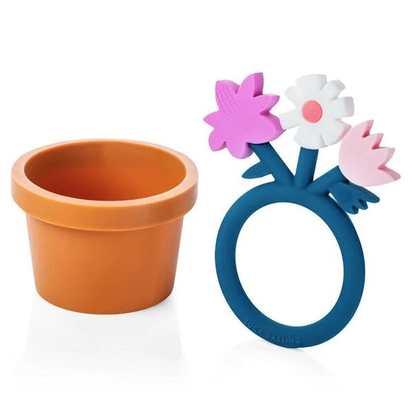 These adorable teethers are fun for the youngest gardeners! Soft BPA-free food-grade silicone teethers are safe and soothing for little one's teeth and gums. Dishwasher safe and easy to clean, set comes with 2 teethers, one shaped like a ring of flowers and one shaped like a terra cotta flowerpot.
