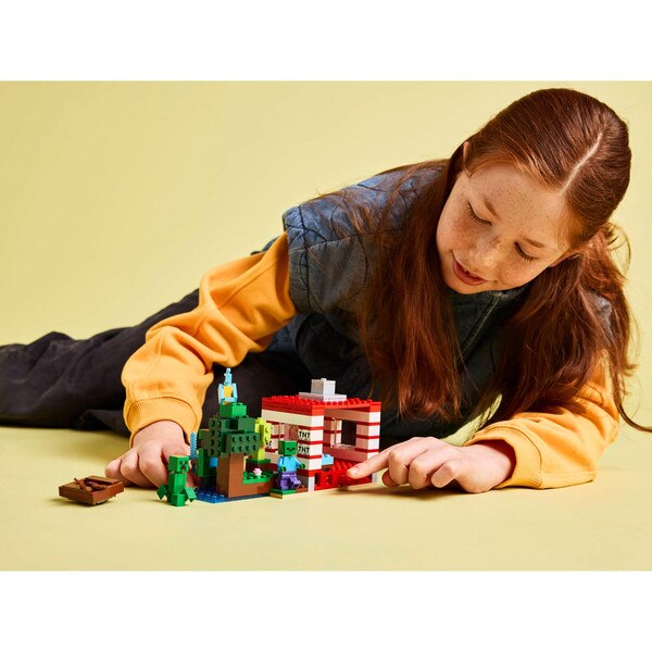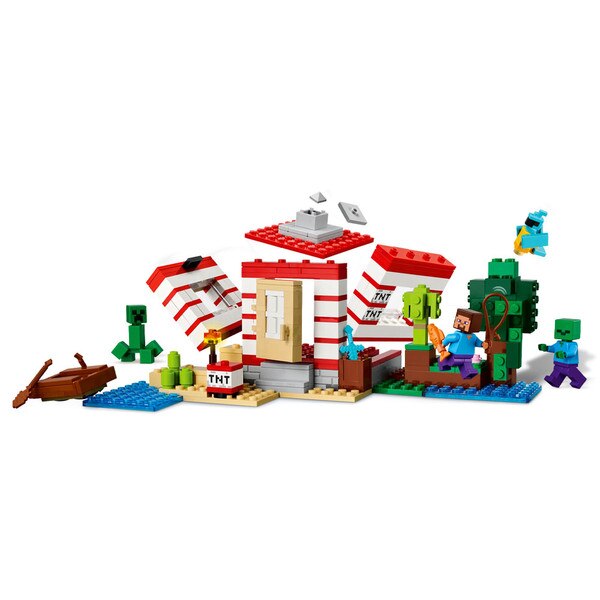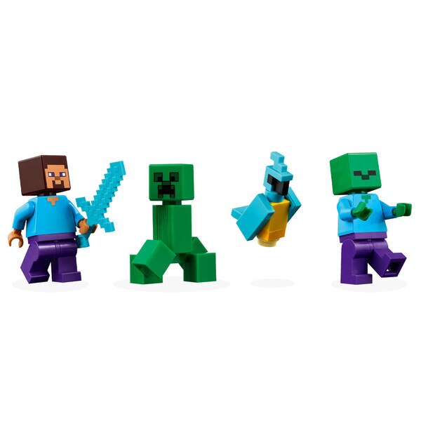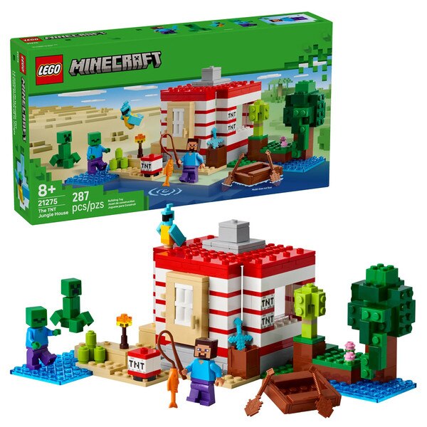 The buildable house is set in the Minecraft jungle biome and looks like a large-scale version of the game’s iconic TNT element. A switch on the side lets kids trigger an exploding TNT function, which collapses the entire house. When the dust settles, kids can rebuild the house so it’s ready for their next adventure. Steve, Creeper™ and zombie minifigures inspire imaginative play and battle action. Authentic LEGO Minecraft accessories include a boat, fishing rod, fish, parrot and jungle foliage. The LEGO® Builder app gives kids the added fun of using their device to zoom in and rotate models in 3D. Contains 287 pieces.