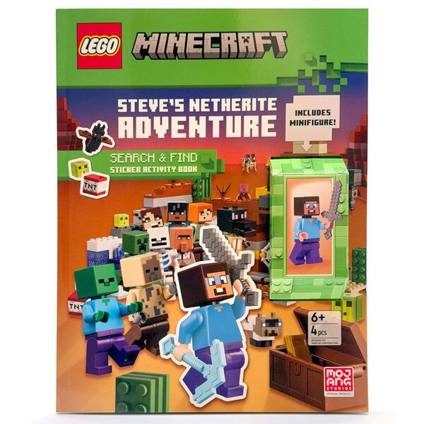Steve goes in search of Netherite and meets many mobs along the way! This LEGO® Minecraft® Seek and Find activity book features photos of real LEGO sets in busy scenes filled with fun details with objects to find as well as mazes, actives and more! Readers can also create their own scenes with the included stickers, adding to the fun and adventure. And most awesome of all, this book features a LEGO Minecraft Steve minifigure with a sword!