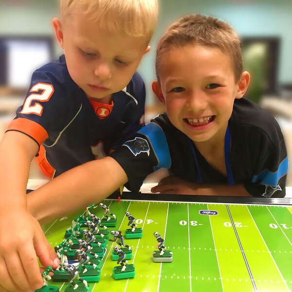 NFL Electric Football lets you call the plays to march your football action figures down the vibrating gridiron! It's the world's favorite football game on the big stage of the National Football League! The original Tudor Games NFL Electric Football game is back, and it's better than ever. The all new PlayAction remote control places the fate of your offense in the palm of your hand, with its on-board variable speed control. Offense? Set! Defense? Set! Slow down the play with your PlayAction remote to see your blockers in action as the play develops. Got a man wide open downfield? Gaping hole in the defensive line? Shift into high speed and accelerate your team to victory!