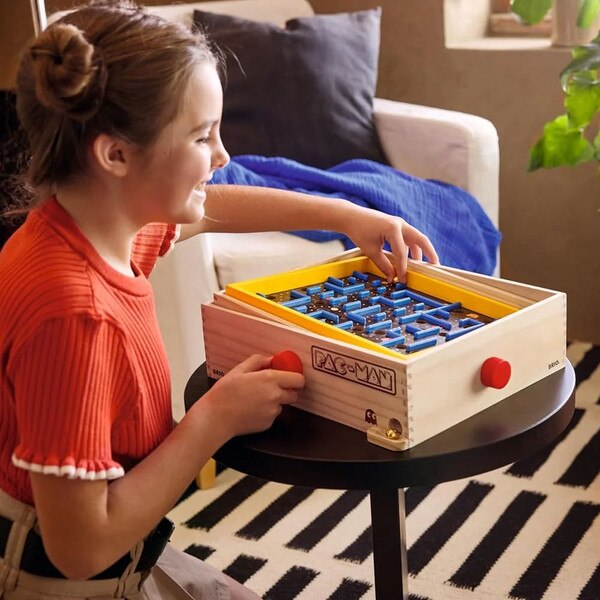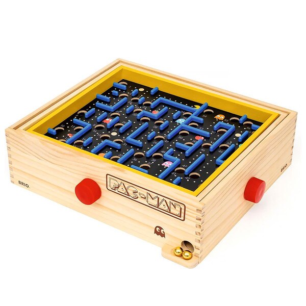 Can you clear the 34065 PAC-MAN Labyrinth Game? This retro-inspired maze game takes you back to the 1980s and the glory days of arcade gaming. Use the knobs to maneuver the board and navigate your way through the wooden maze, passing over PAC-DOTs and avoiding the Ghosts along the way. See what hi-score you can reach as you relive childhood memories in this tribute to one of the most beloved video game characters of all time.