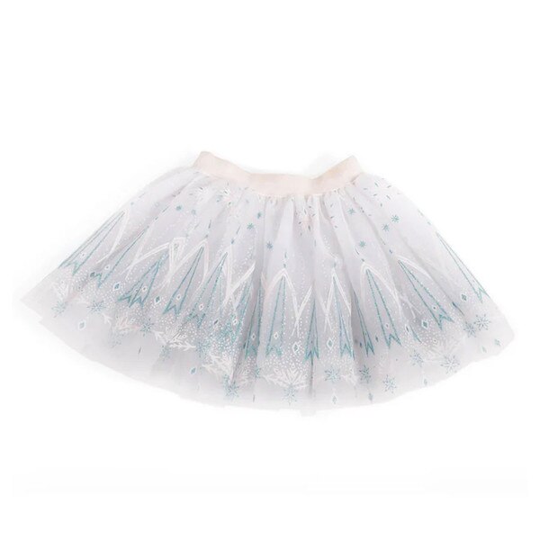 At the end of this rainbow is just more fun! The tiered rainbow skirt is made with layered tulle for all the fun of flounce but none of the weight, while the pink satiny spandex bodice has white piping detail and adorable strappy cap sleeves. Size is 5-6 years old.