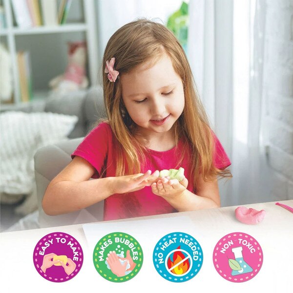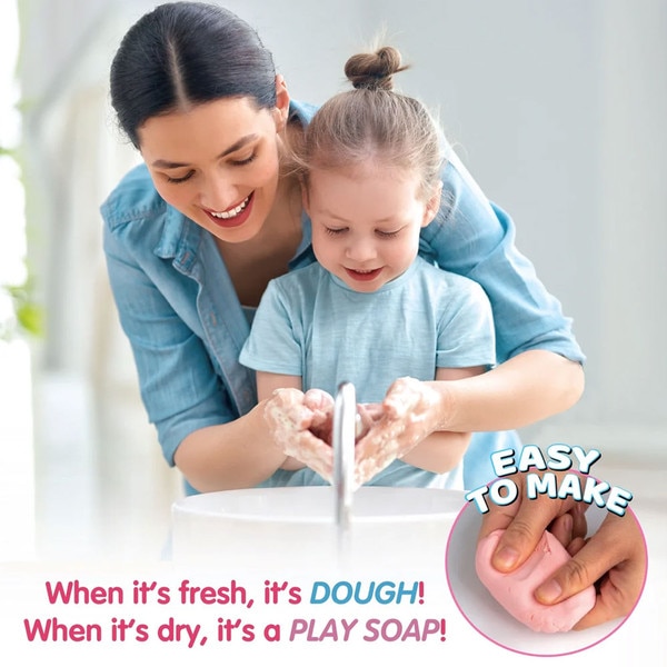Create your own Ocean Soap with our Rub-A-Dub Dough Kit. Each mystery pack contains two of six Ocean Soap designs, offering a fun surprise with every unboxing. This all-in-one set includes soap dough and shaping mold. When it’s fresh, it’s dough; when it’s dry, it’s a play soap.