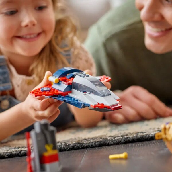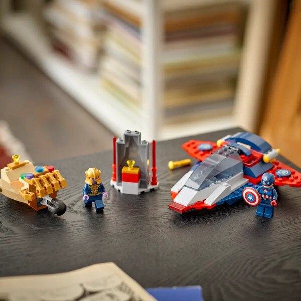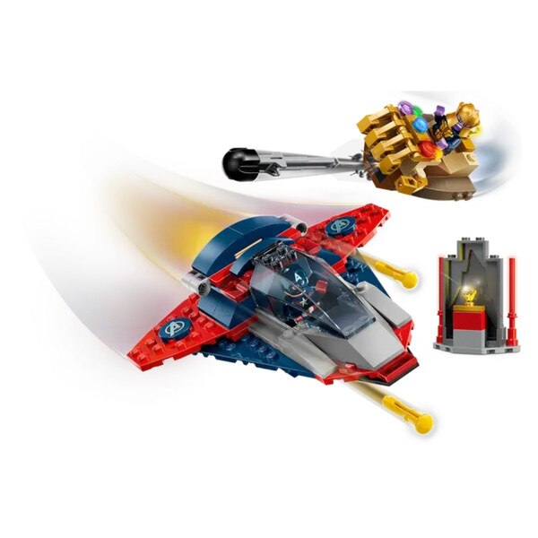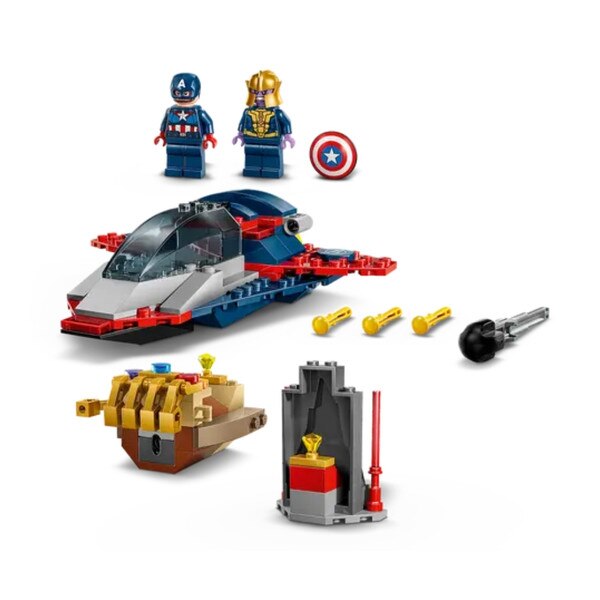 Unleash the ultimate showdown in a cosmic clash of heroes with this LEGO Marvel building set! Kids will love the adventure of piloting Captain America's Quinjet against Thanos's menacing Infinity Gauntlet ship, all while enhancing their building skills with easy-to-follow instructions and exciting minifigures for endless imaginative play.