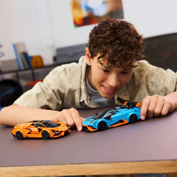 Kids can explore Lamborghini’s distinctive style, engineering and design with this double pack of LEGO® Speed Champions Lamborghini Revuelto & Huracán STO toy cars. This model kit with 2 LEGO race cars to build, display and play out stories with makes a great gift for kids and adult collectors alike.