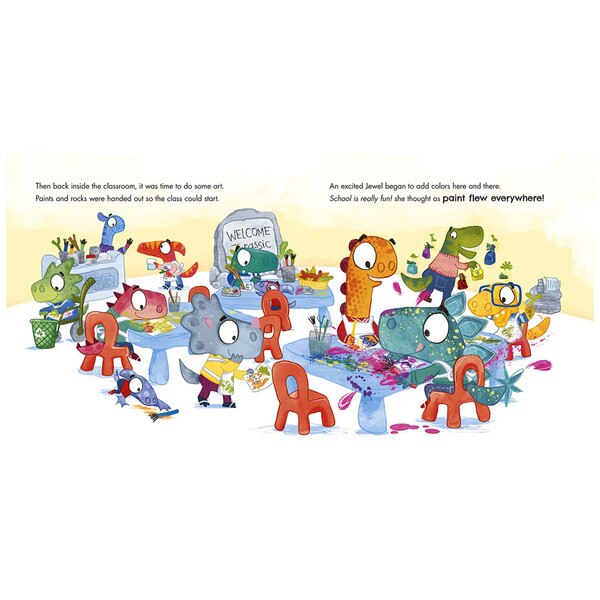 Jewel the dinosaur is very nervous about her first day of school. There are so many new dinos to meet, the cafeteria is noisy, and her new classroom is so big! But as the day goes on, and Jewel settles into her new class and makes new friends, she realizes that school isn't that scary after all. With adorable illustrations and rhyming, reassuring text, this fun starting-school picture book will encourage young readers to explore their own feelings or nerves around this big milestone so they can have a roar-some first day, too!